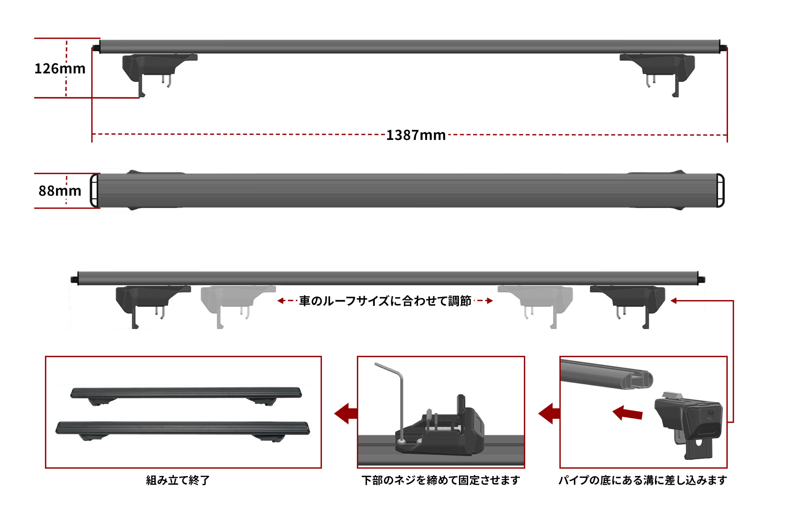 | 適合車種 | 汎用タイプ ※ルーフレール付き車輛専用 |